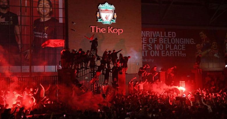 ومع إطلاق حكم موقعة “ستامفورد بريدج” صفارة نهاية المباراة، انطلقت الاحتفالات في مدينة ليفربول وخرجت الجماهير للشوارع، ورفعت أعلام “الريدز” وشعارات “لن تسير وحيداً”، رغم الإرشادات بتجنب التجمعات بسبب القيود المفروضة لتجنب تفشي فيروس كورونا.