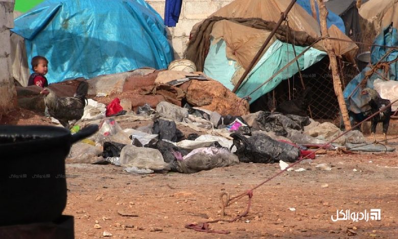 وتعاني المخيمات في شمال غربي سوريا ولاسيما العشوائية منها من أوضاع مزرية، إذ تفتقر لأبسط شروط السلامة، وعادةً ما تتعرض خيمها المهترئة للاقتلاع مع أي هطلٍ مطري أو هبوب للرياح لاسيما أن استجابة المنظمات الإنسانية لهذه المخيمات ضعيفة جداً.