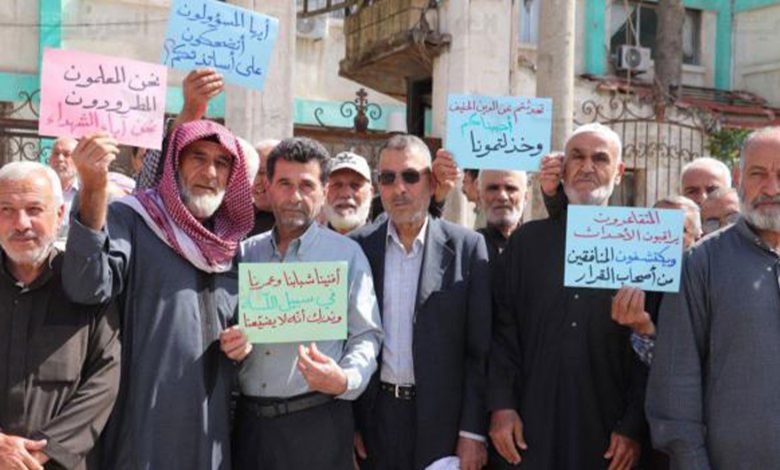 معلمون متقاعدون في إدلب ينظمون وقفة احتجاجية للمطالبة بحقوقهم التقاعدية