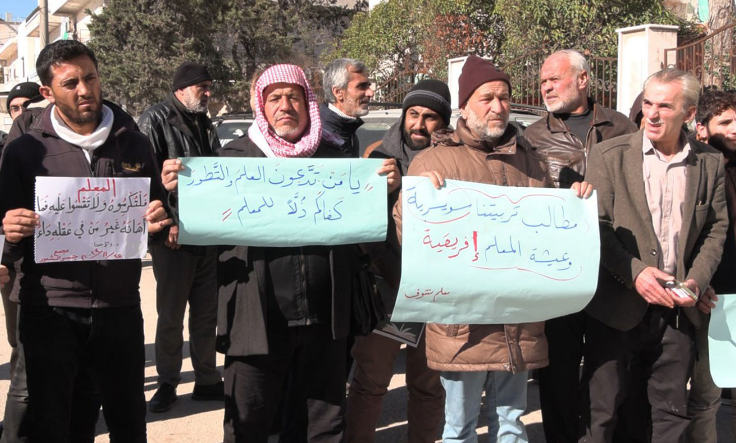 وطالب المعلمون المحتجون، بجعل راتب المعلمين بشكل دائم ودوري وزيادة مقداره بما يتناسب مع الوضع المعيشي المتردي.