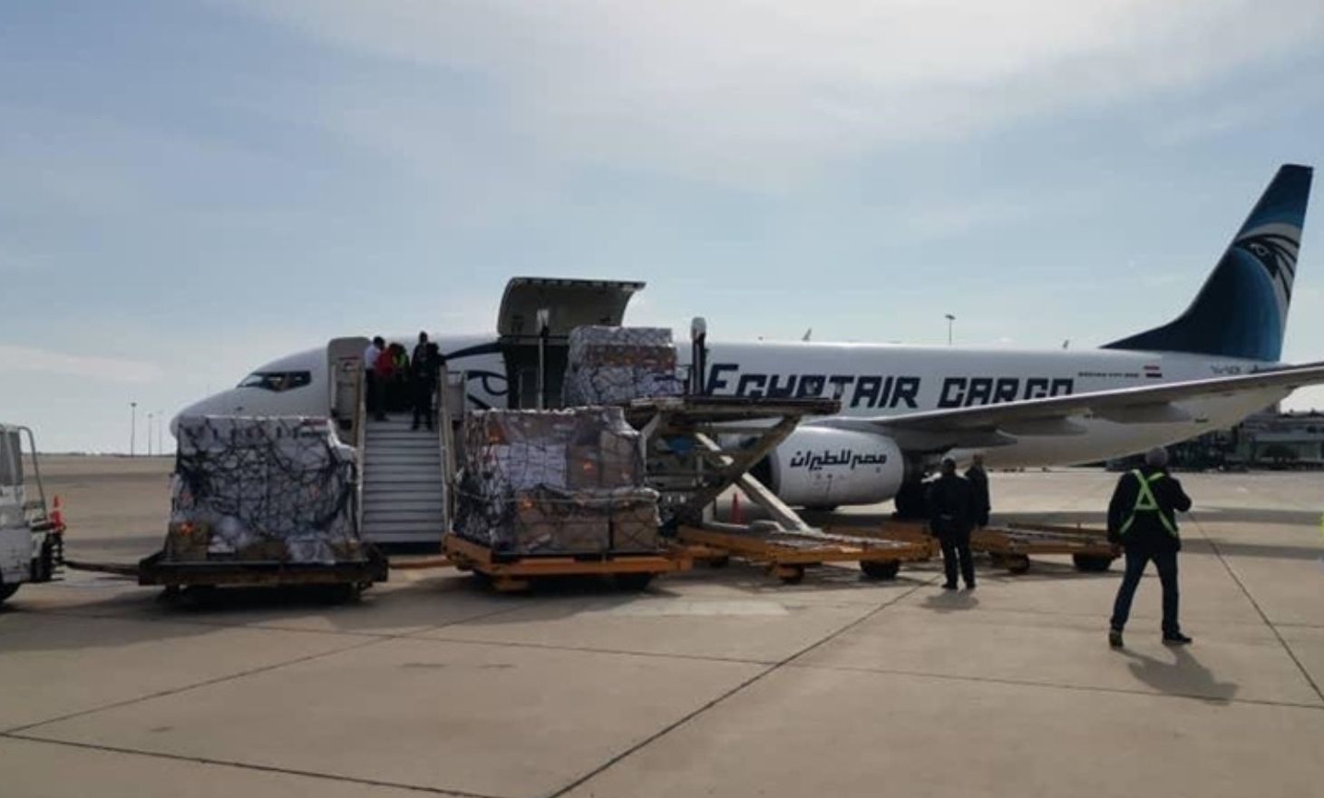 وقالت وزارة الخارجية المصرية في بيان: “وصلت طائرة شحن مدنية تابعة لشركة مصر للطيران محملة بـ 15 طناً من المساعدات الإغاثية والأدوية والأغذية المقدمة من الهلال الأحمر المصري للهلال الأحمر العربي السوري”.